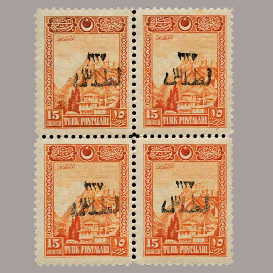 1927 BİRİNCİ İZMİR SÜRŞARJLI HATIRA PULLARI DÖRTLÜ BLOK