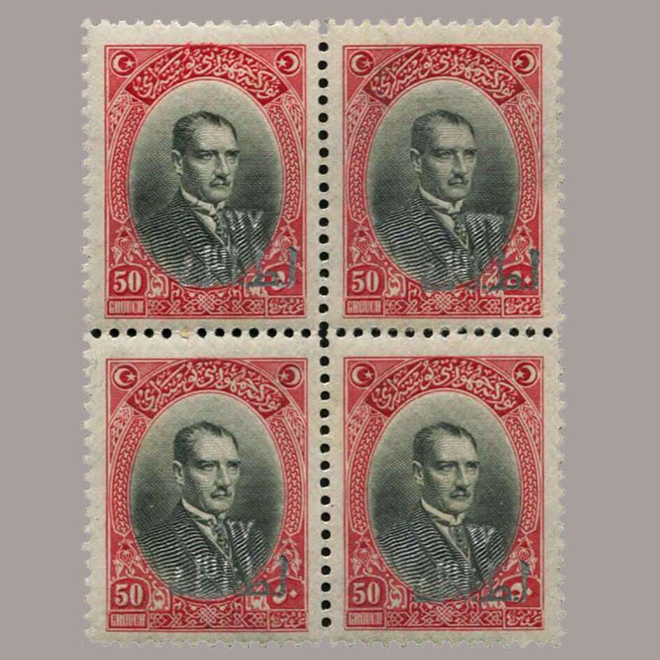 1927 BİRİNCİ İZMİR SÜRŞARJLI HATIRA PULLARI DÖRTLÜ BLOK
