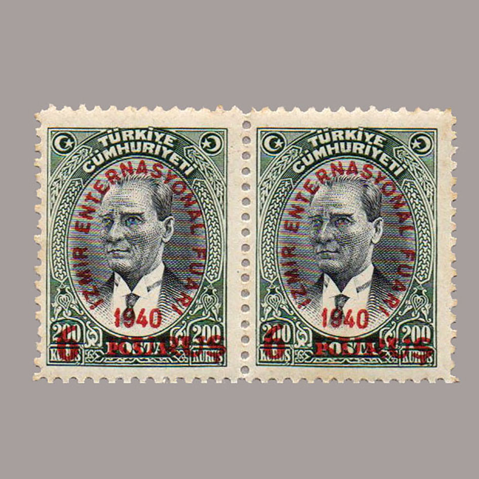 1940 İZMİR FUARI SÜRŞARJLI HATIRA PULLARI İKİLİ BLOK
