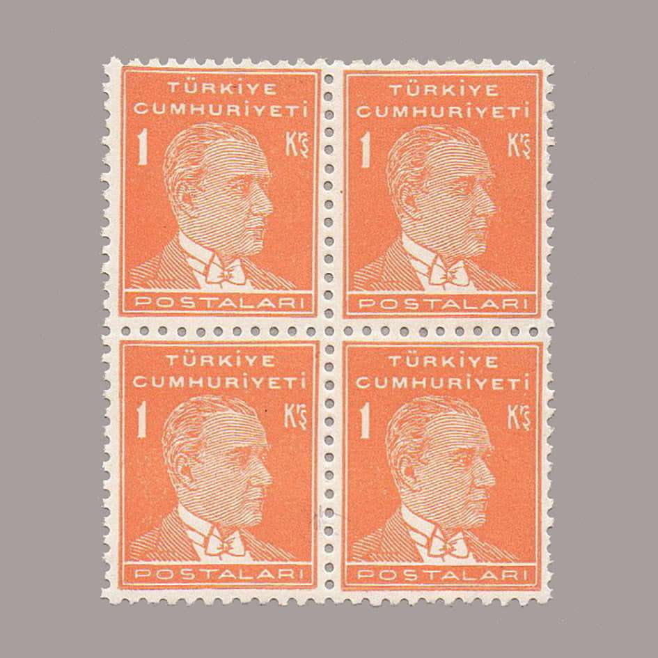 1955 DOKUZUNCU ATATÜRK SERİSİ (Bulanık Baskı-Grimtrak zamk) DÖRTLÜ BLOK