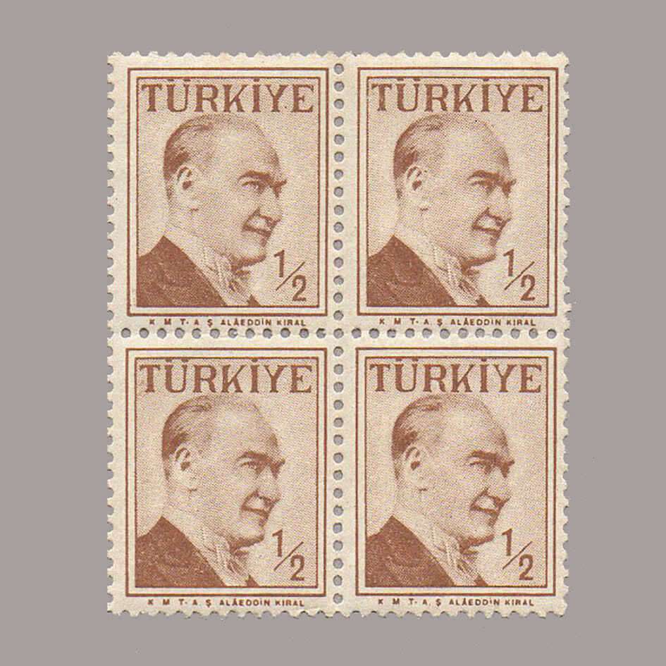 1957 ATATÜRK (Çift çizgili çerçeveli) DÖRTLÜ BLOK