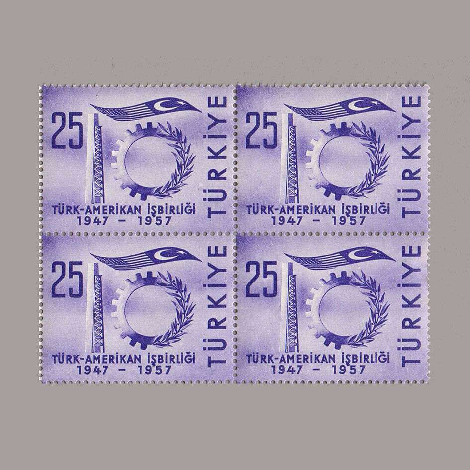 1957 TÜRK-AMERİKAN İŞBİRLİĞİNİN 10.YILI DÖRTLÜ BLOK
