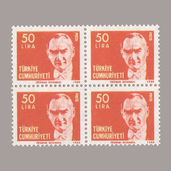 1980 ATATÜRK SÜREKLİ SERİ DÖRTLÜ BLOK